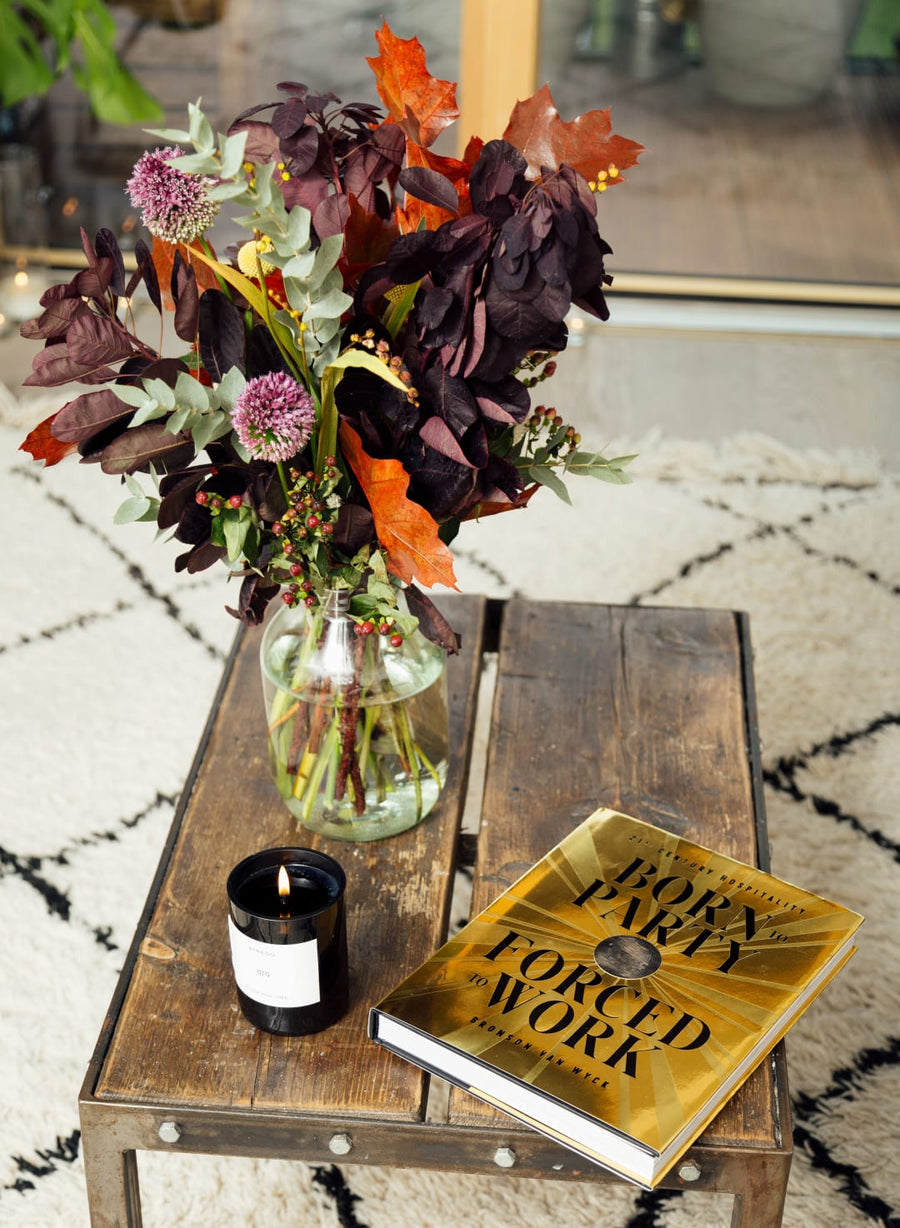 Excessive clusters of church candles are such an easy win and also very flattering. I place groups of them in bulk around all available hard surfaces. Add a delicious scented candle - my favourite is Byredo Bohemia – and you have instant atmosphere.