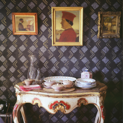 Shortly after they moved in, they began to cover every visible surface, wall, table and last piece of crockery with glistening strokes and intricate swirls of paint. Soon the inside of the house would be adorned in colourful print and pattern from floor to ceiling, an aesthetic that couldn’t have been further from the rather more conservative interior design associated with the time. The imaginative use of colour throughout the house has inspired the collection, where a bold palette evokes a feelgood aesthetic.