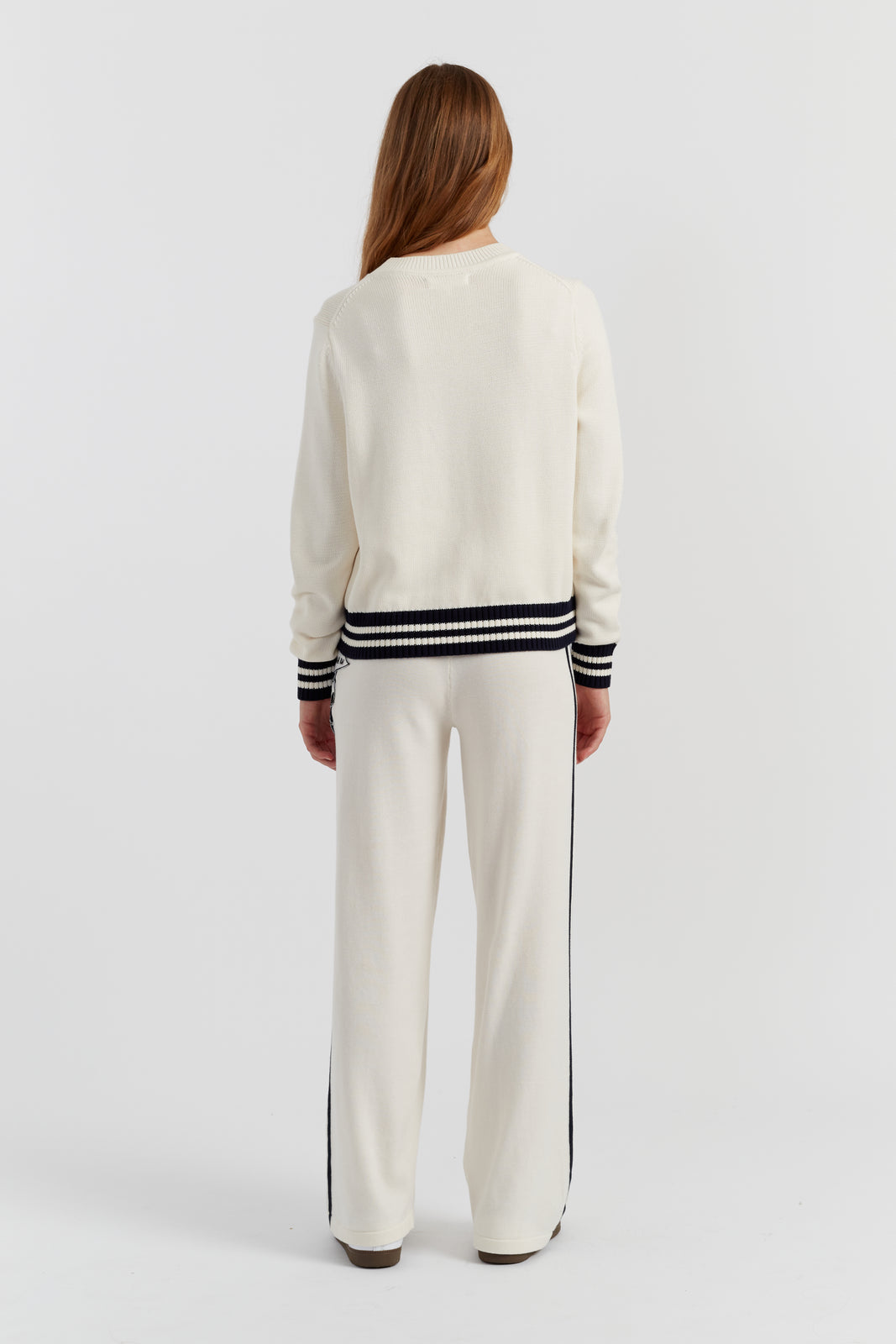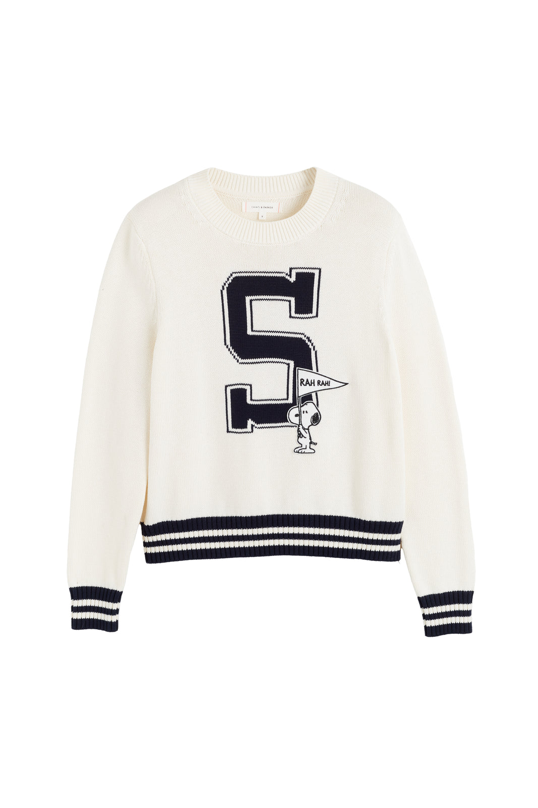 The Cream Cotton Snoopy Varsity Sweater is a Classic.