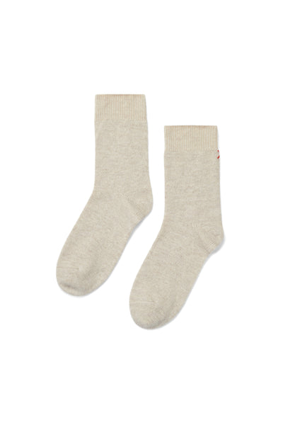 - These wool cashmere socks were made in Inner Mongolia in a ‘vertical’ factory. This means the start-to-finish process – from goat herding all the way to dyeing the yarn, and knitting the final style – is carried out by the same supplier resulting in a low carbon footprint. This garment is made from 100% organic cotton and cashmere, with minimal wastage, and is shipped with plastic-free packaging.