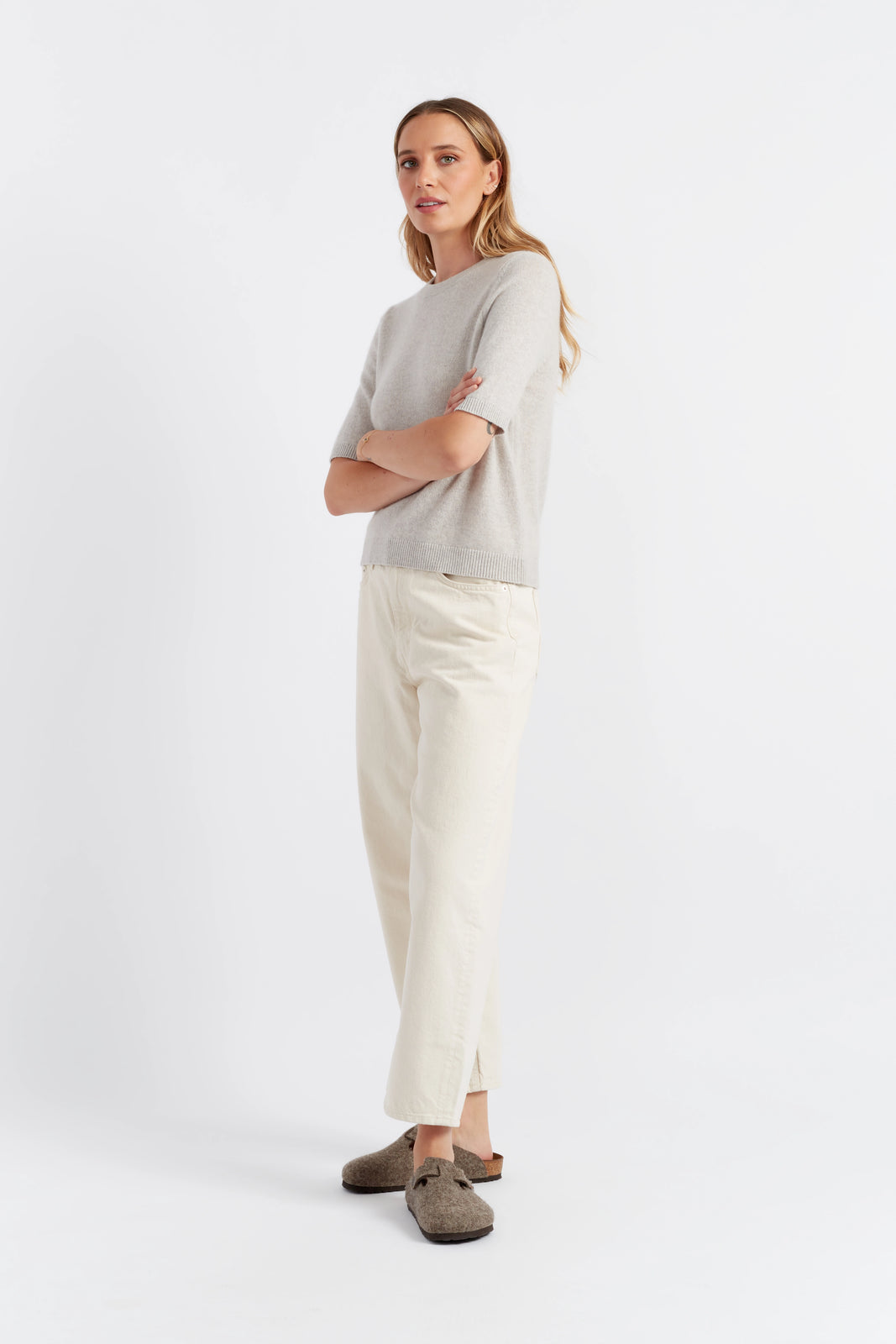 A new addition to our Summer Cloud Cashmere range, this kitted tee is our seasonal must have. It is finely knitted from ultra fine cashmere in a classic shape making it a perfect layering piece during colder days.