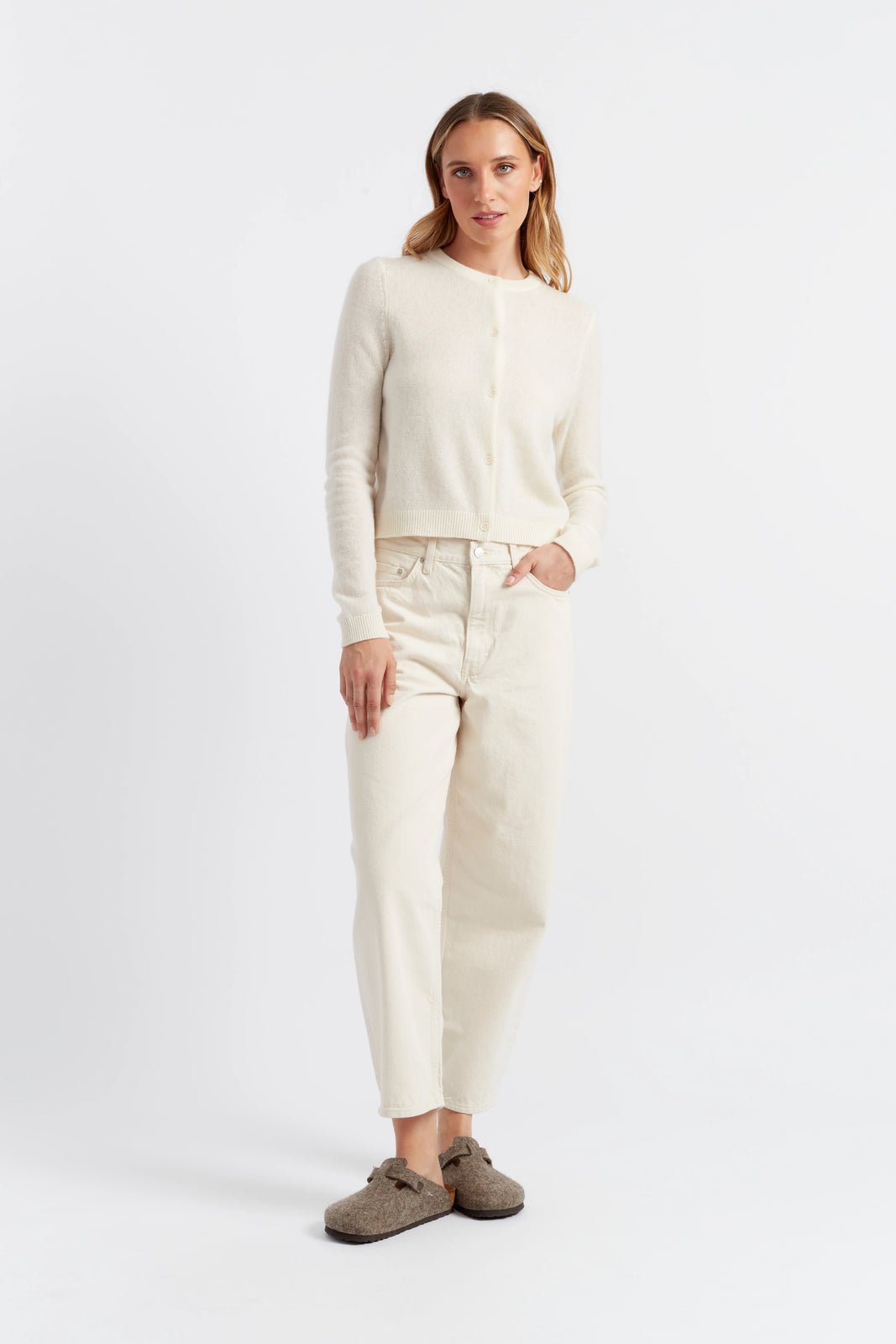 The Cream Cloud Cashmere Cropped Cardigan is a Slim.