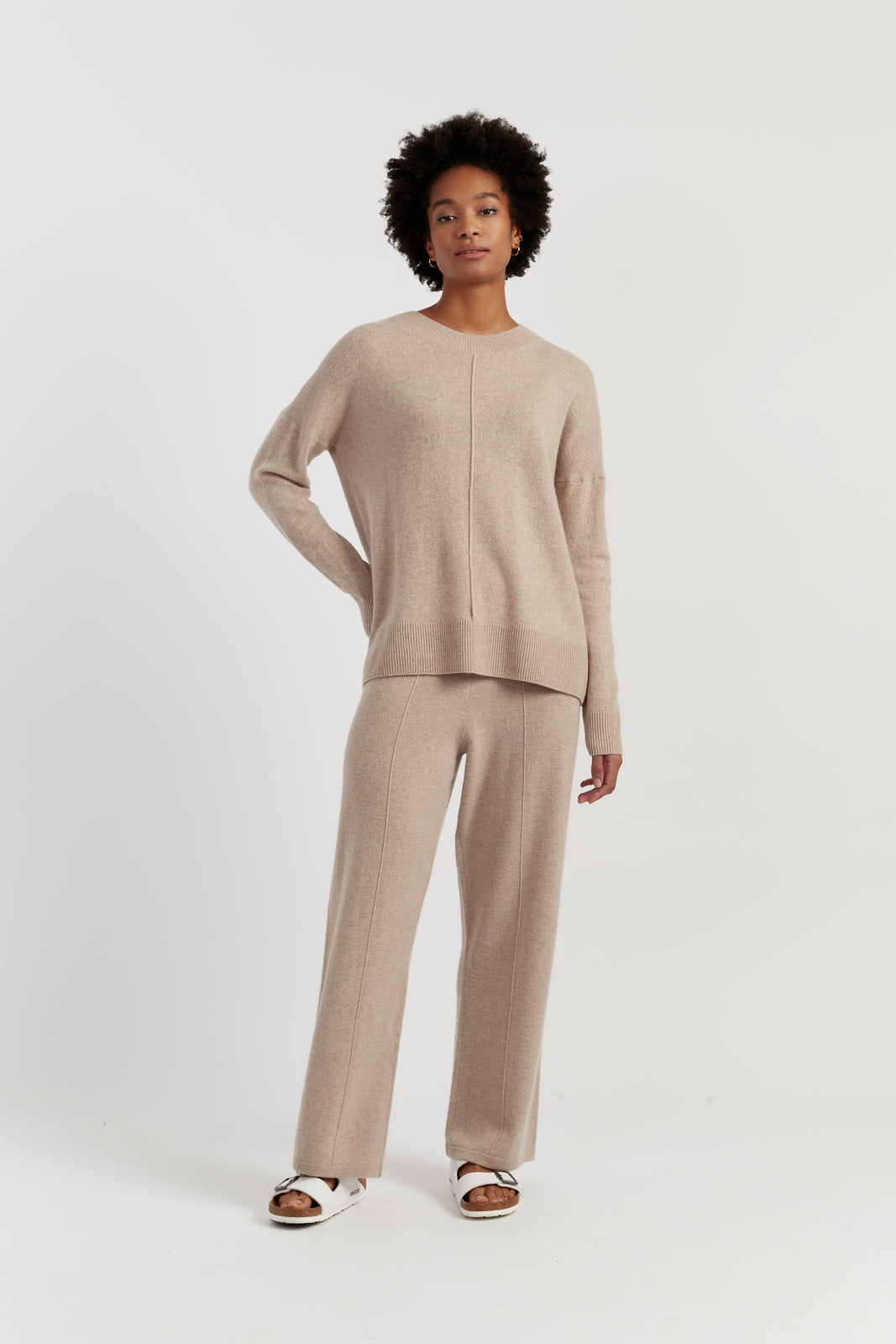 Our new seasonal must have - this super light and airy slouchy sweater exudes laid-back appeal, perfect for this warm season. It is finely knitted from a blend of wool and cashmere and detailed with a raised seam through the centre front. Part of our Basics collection, this piece will slot effortlessly into your week-to-weekend wardrobe. The oat colourway makes it a true style staple.