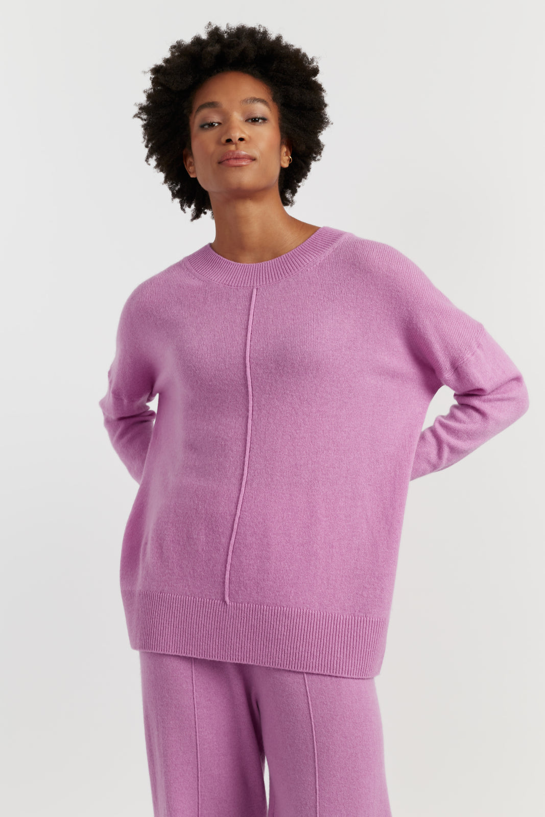 Our new seasonal must have - this super light and airy slouchy sweater exudes laid-back appeal, perfect for this warm season. It is finely knitted from a blend of wool and cashmere and detailed with a raised seam through the centre front. Part of our Basics collection, this piece will slot effortlessly into your week-to-weekend wardrobe. The lilac colourway makes it a true style staple.