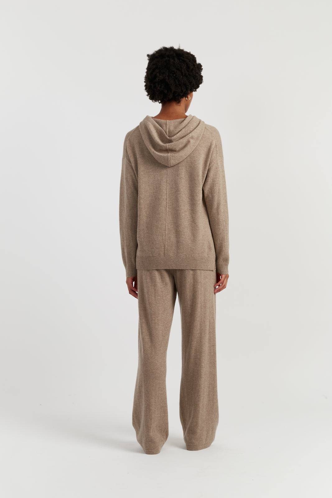 A new addition to our Basics collection, this hoodie is shaped for a cool, oversized and relaxed fit. It is finely knitted from wool with a touch of cashmere for added softness. The oatmeal colour is an everyday classic. Team it with the matching pants.