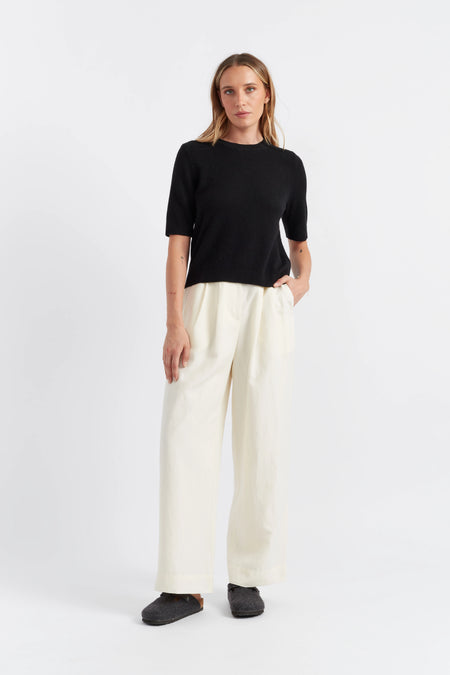 A new addition to our Summer Cloud Cashmere range, this kitted tee is our seasonal must have. It is finely knitted from ultra fine cashmere in a classic shape making it a perfect layering piece during colder days.
