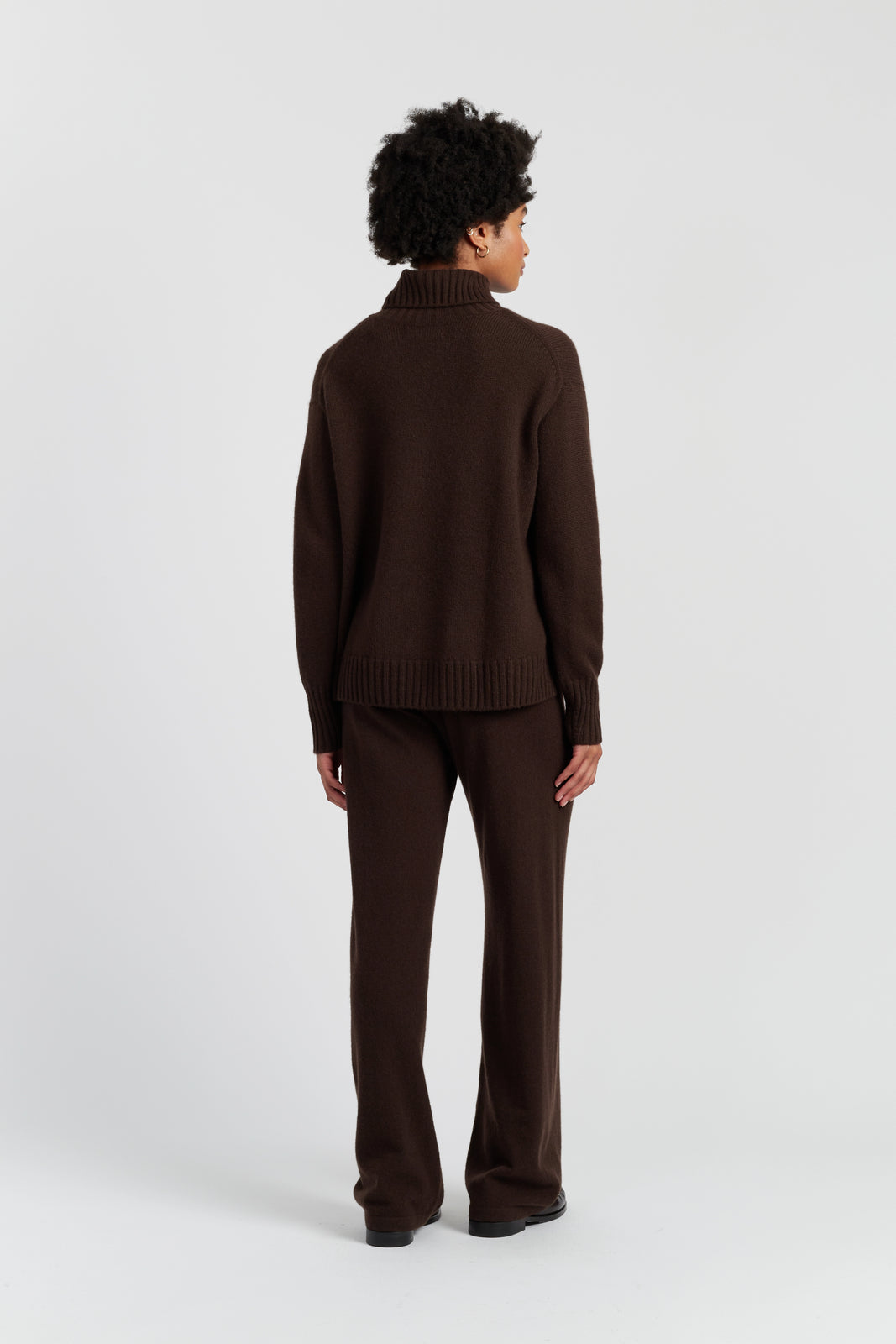 Chocolate Pure Cashmere Relaxed Rollneck Sweater