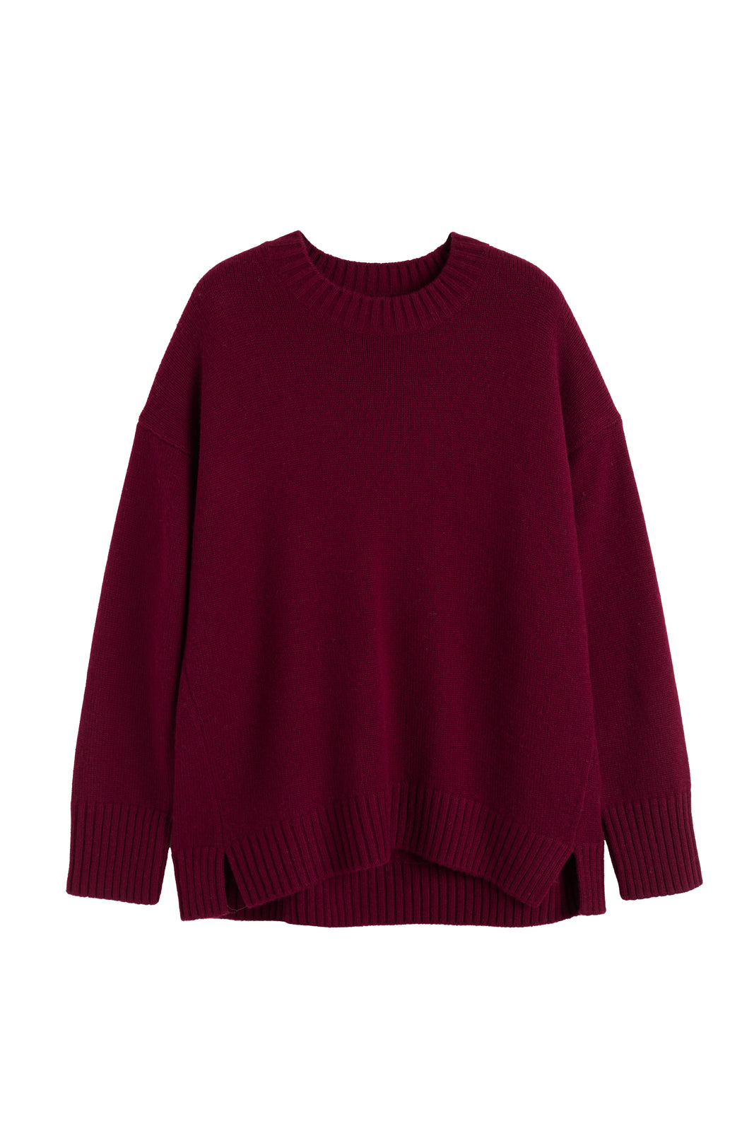 The Claret Pure Cashmere Crew Neck Sweater is a Oversized.