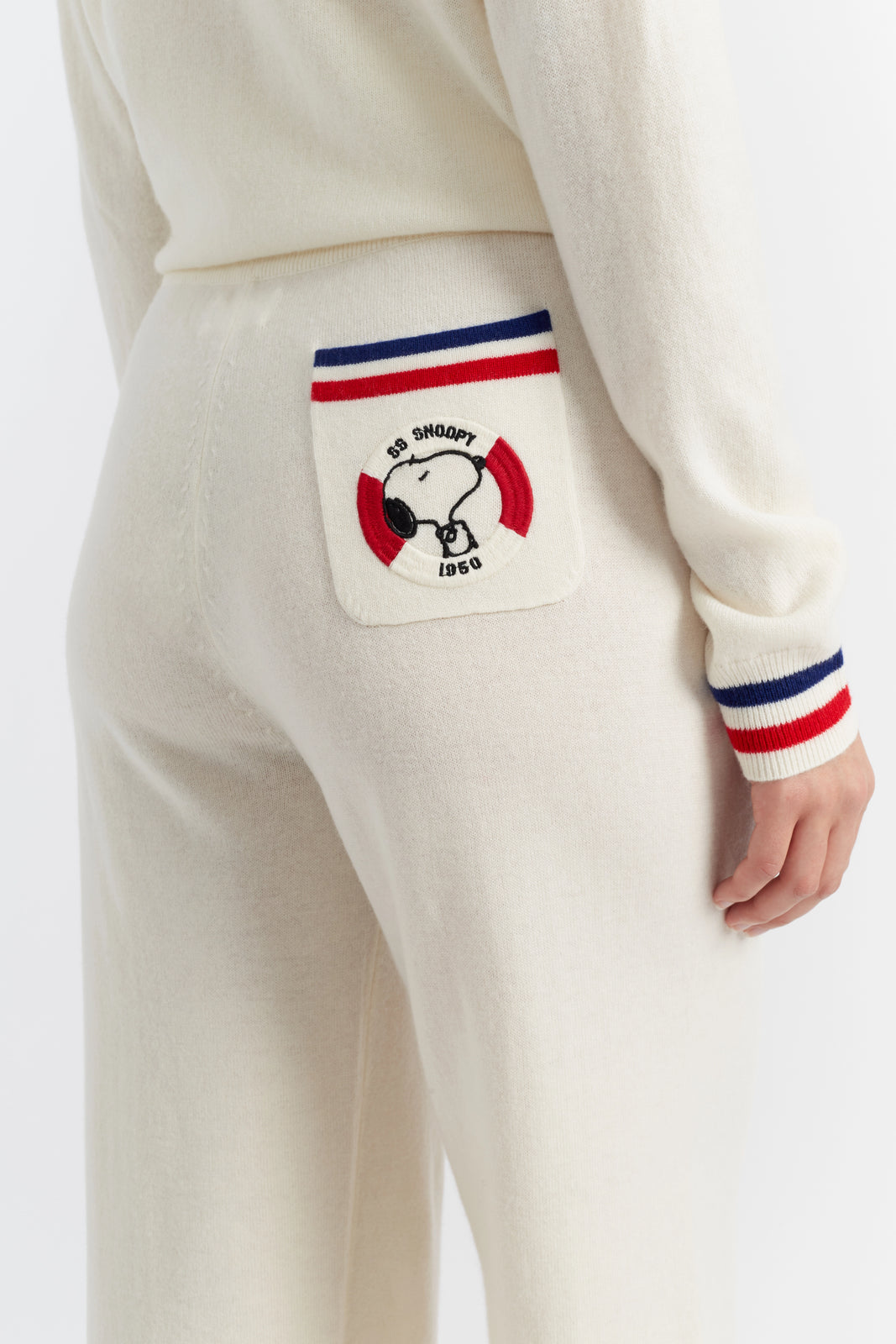 Made to complement any number of the sweaters from our latest Peanuts collection, these cream track pants are finely knitted from a luxurious wool and cashmere blend. Relaxed yet super flattering, they are shaped for a wide-leg silhouette. An embroidered Snoopy decorates the back patch pocket.