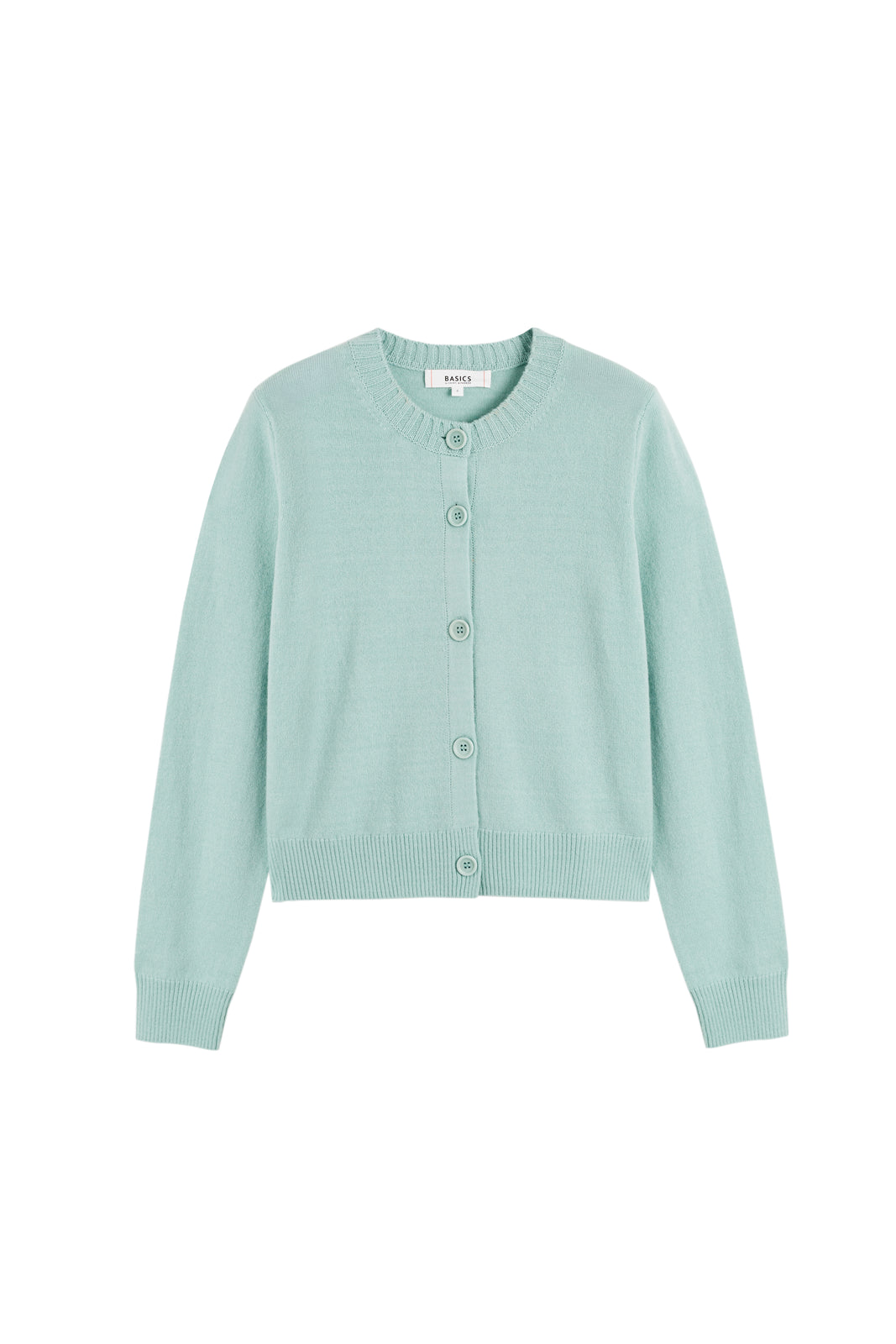 The Dusty-Mint Wool-Cashmere Crew Neck Cardigan is a Classic.