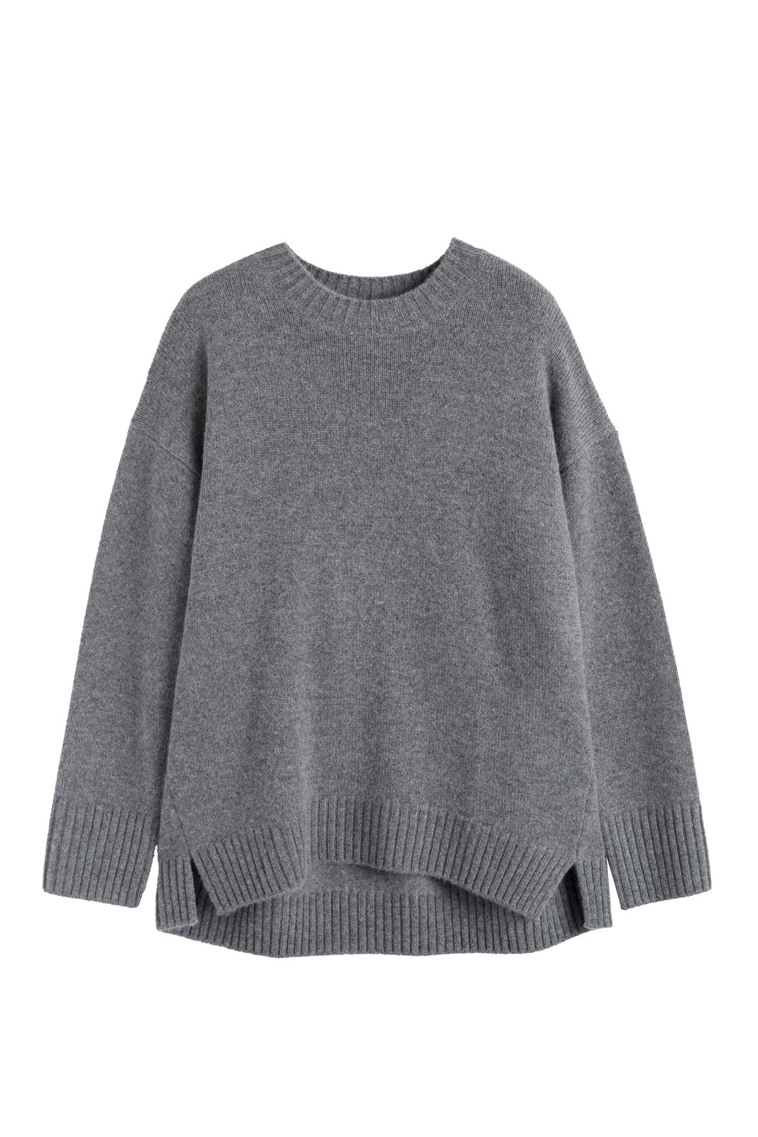 The Grey-Melange Pure Cashmere Crew Neck Sweater is a Oversized.