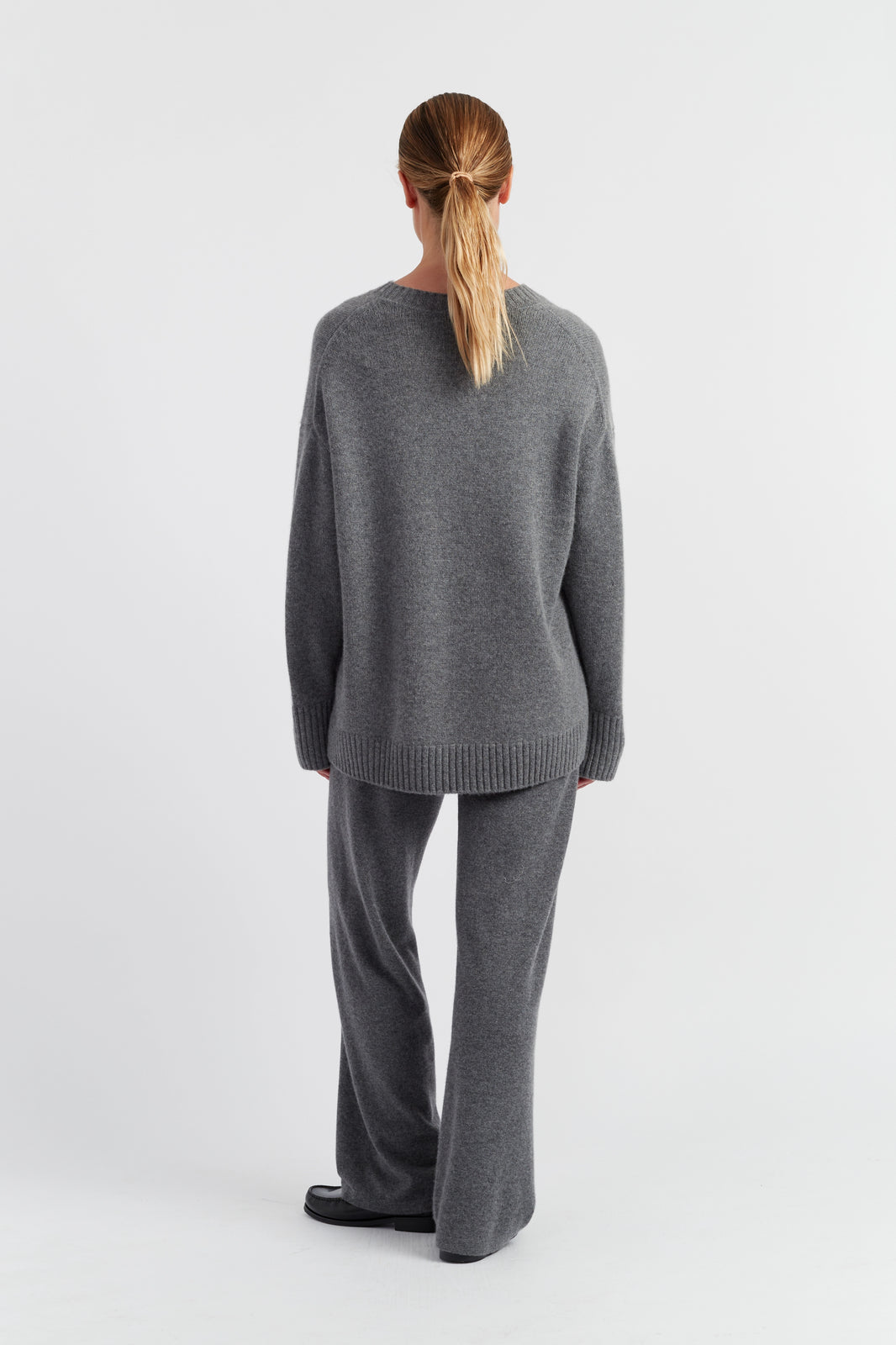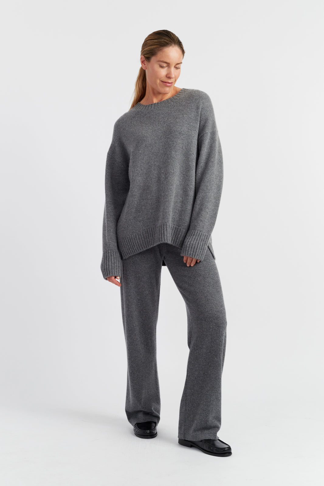 A refined take on a classic, this crew neck sweater is spun from 100% pure cashmere in a chunky knit for softness and substance. It’s designed with understated detailing and a relaxed, flattering shape that drapes beautifully. This classic grey colourway is a seasonal essential.