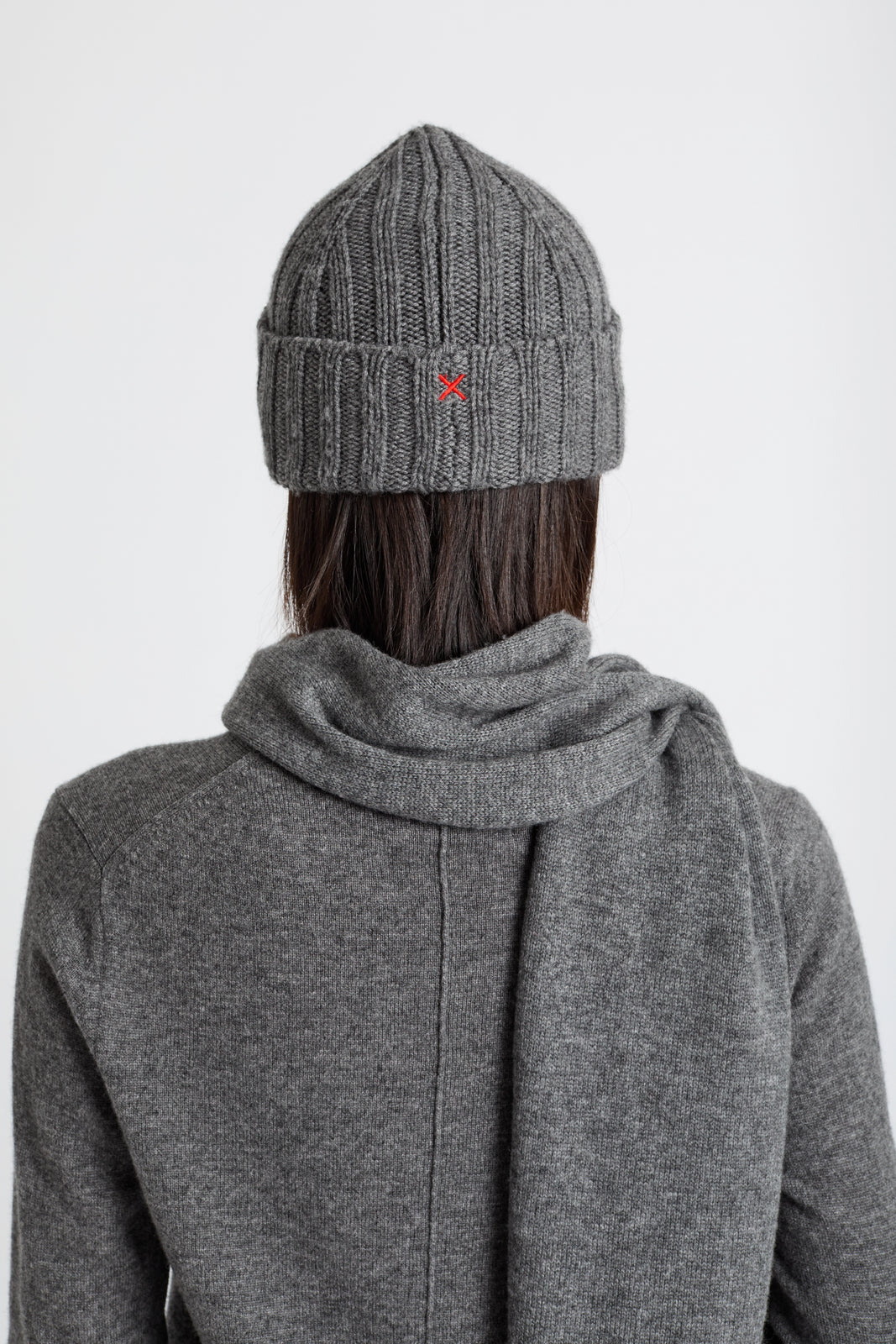 The Grey Wool-Cashmere Ribbed Hat is a One Size.