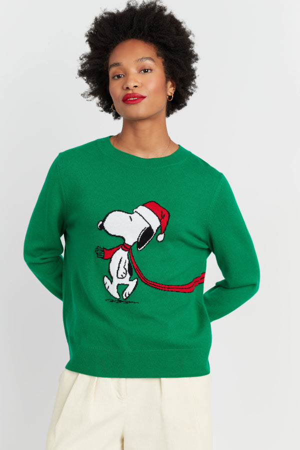 The Jolly-Green Wool-Cashmere Holiday Snoopy Sweater is a Classic.