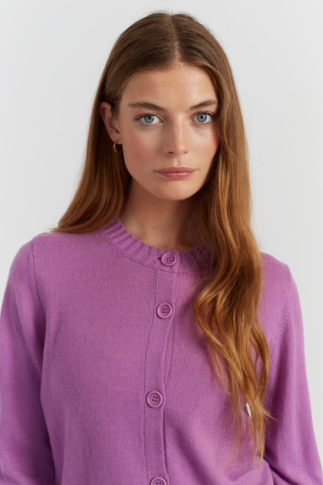 The Lilac Wool-Cashmere Crew Neck Cardigan is a Classic.