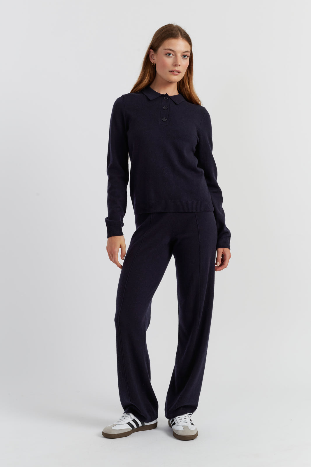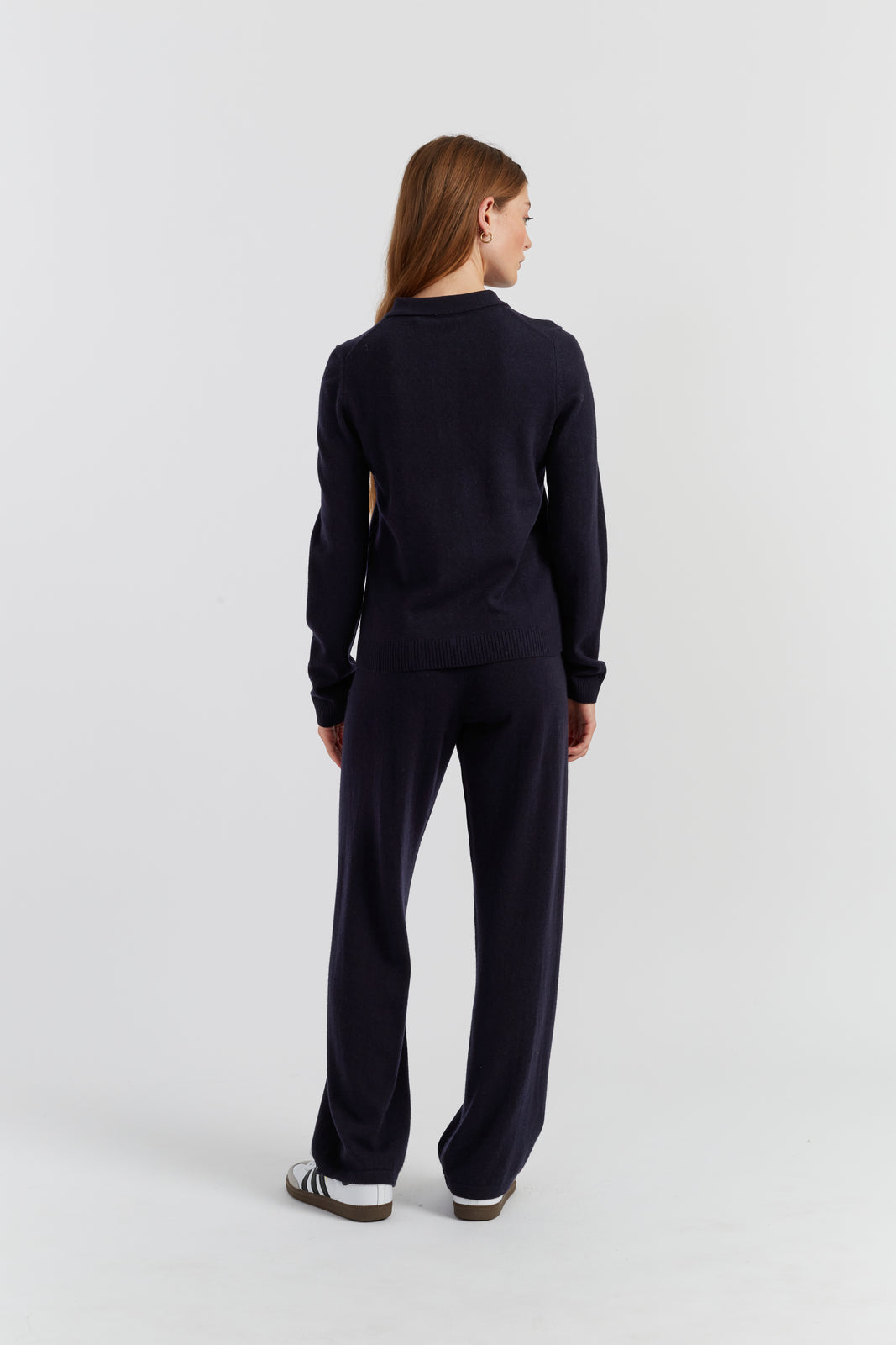 The Navy Wool-Cashmere Polo Sweater is a Classic.