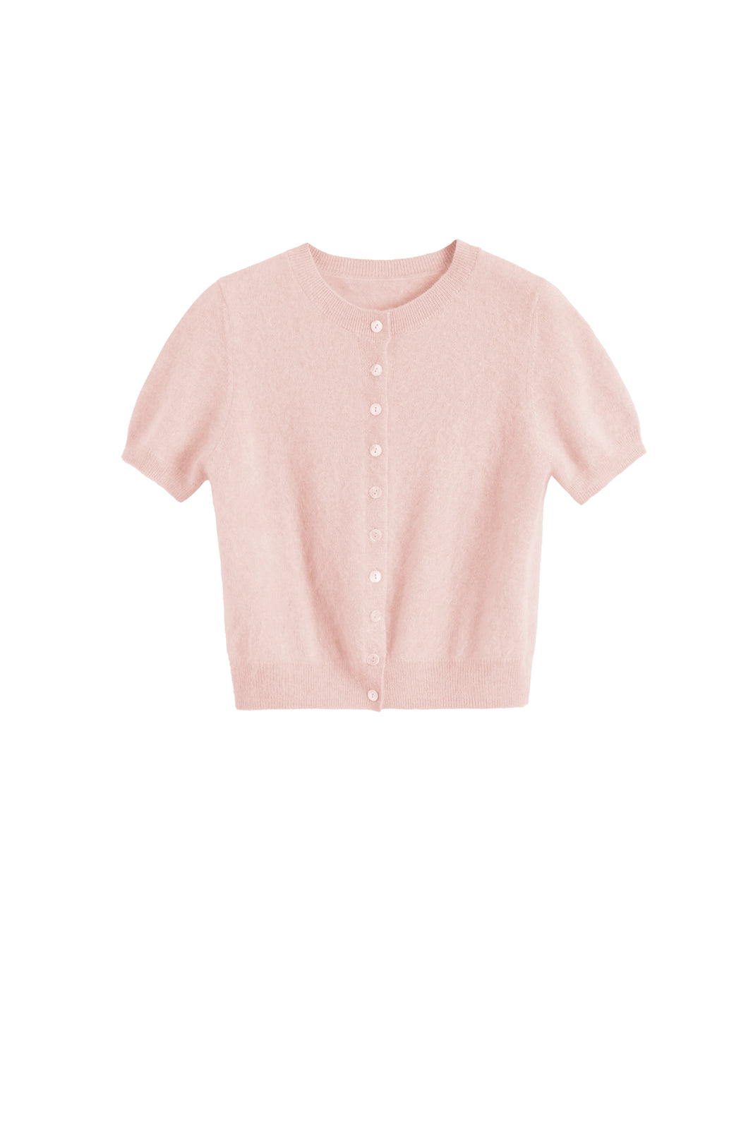 A fresh twist on a classic tee. This pink short-sleeved style is crafted from pure brushed cashmere for a soft, featherlight feel. Finished with a button-down front and ribbed trims, it’s a polished yet effortless piece that pairs perfectly with relaxed trousers or skirts.