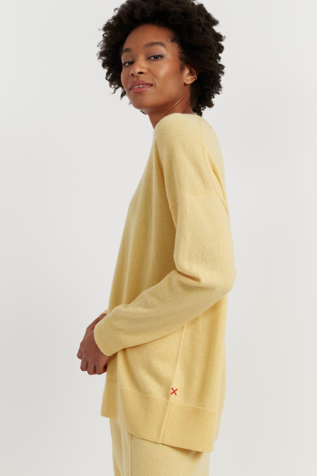 The Soft-Yellow Wool-Cashmere Slouchy Sweater is a Relaxed.