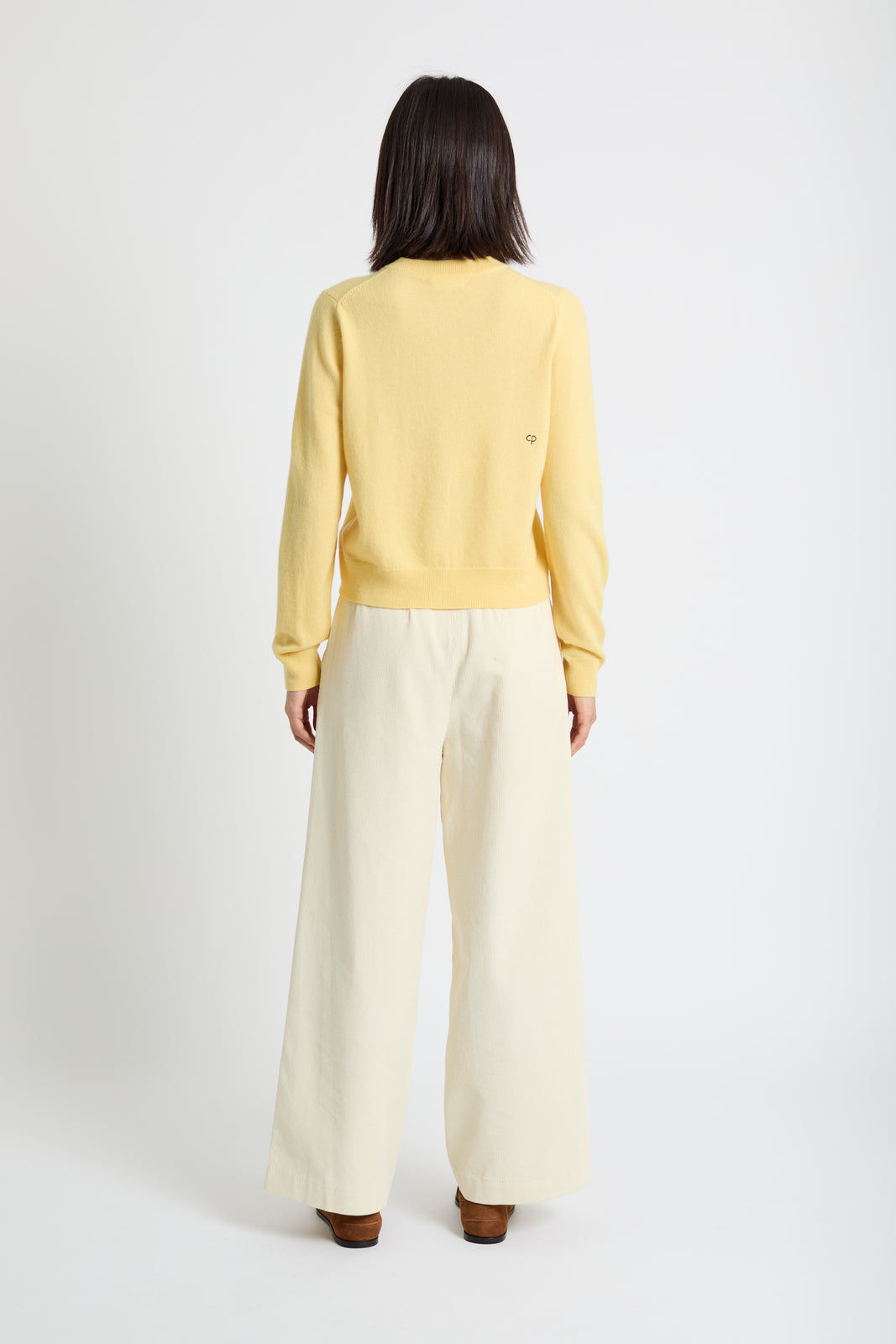 The Soft-Yellow Wool-Cashmere Sneeky Snoopy Cardigan is a Classic.